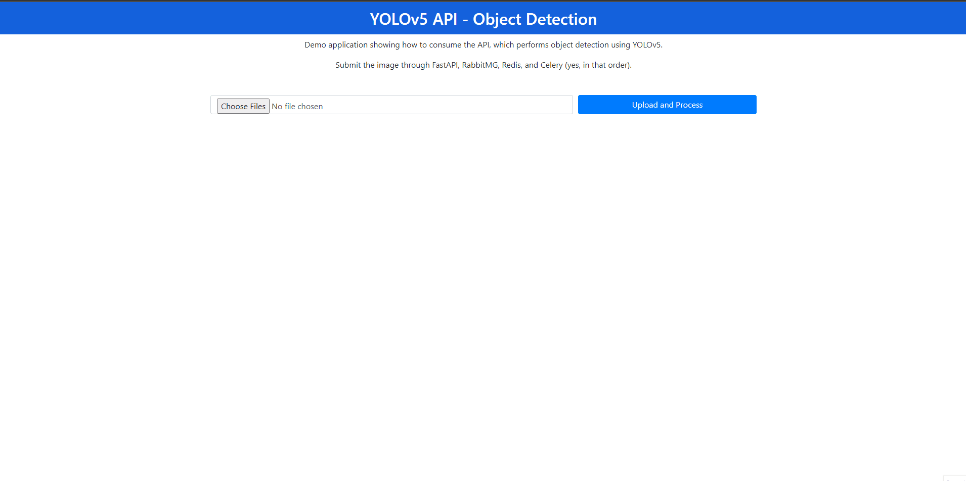 Since Yolo is a deep model which may take some time to return results, we will use Celery, Redis and RabbitMQ to control the tasks in background.