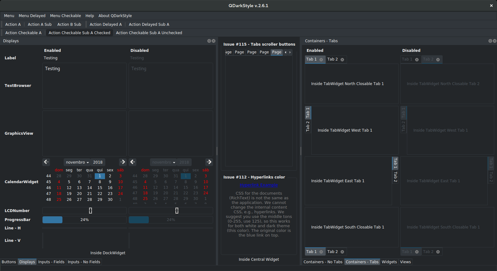 Here are a few snapshots comparing the use of QDarkStyle v2.6.1 and the default style. Click in the image to zoom.