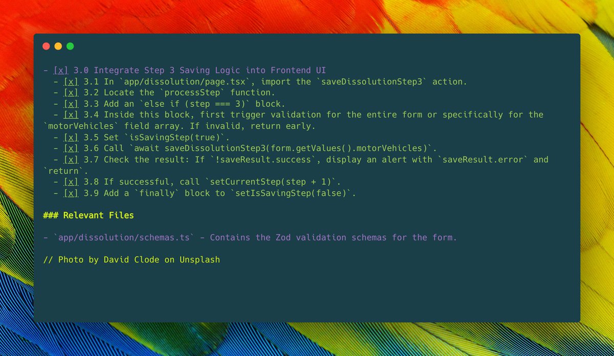 While it's not always perfect, this method has proven to be a very reliable way to build out larger features with AI assistance.