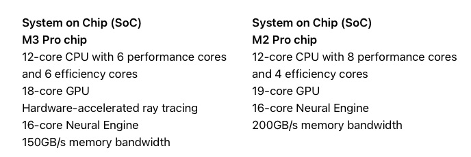 Source: https://wccftech.com/m3-pro-has-fewer-performance-cores-and-lower-memory-bandwidth-than-m2-pro/