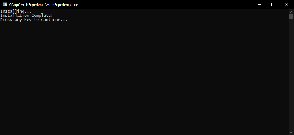On unpacking the release tarball, run ArchExperience.exe once for registering this distro to WSL