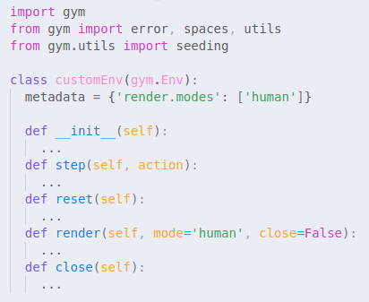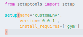 - Assuming we are creating customEnv as custom gym environment, and so in the setup.py: