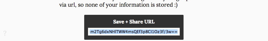 All information is persistant locally, using HTML5 local storage, and sharable via URL Hashes