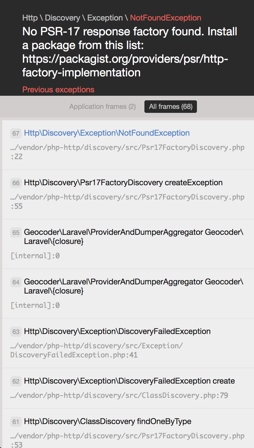 No PSR-17 response factory found. Install a package from this list: https://packagist.org/providers/psr/http-factory-implementation