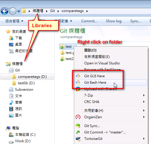 Can't find "git bash here" in context menu when I am in windows libraries