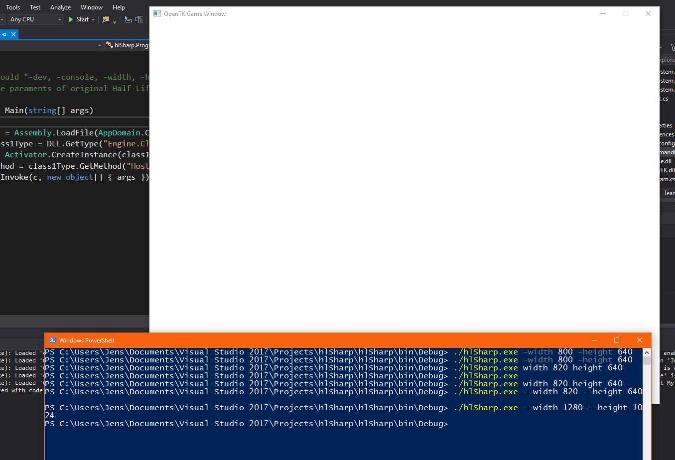 Don't forget if you click "Rebuild" or "Build" than hlSharp -> ContentMenu -> Add existing file -> Engine.dll from Engine/bin/Debug/Engine.dll and Make sure "Don't copy" to "Copy always" than Build and Run with hlSharp and Go to hlSharp/bin/Debug and open Command or Powershell than