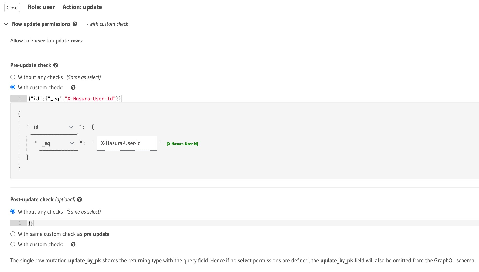 I was going through a course in hasura.io/learn. I came across this link - https://hasura.io/learn/graphql/hasura/authorization/2-users-table-permissions/. There in update section, the image is of older console version I guess. In the latest console version, we do have two pre-update and post-update. So, just wanted to shred a light on this. As a long time user of hasura I was able to catch up with what docs were saying, but I think it will cause certain confusion for newbies.