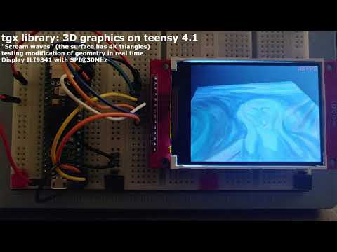 Warning: The library's goal is to draw graphics on a memory framebuffer. As such, it does not provide any hardware/screen support. You will need a screen driver to display the memory framebuffer onto a physical screen. If you are using a Teensy 4.0/4.1 and an ILI9341 screen, you may consider using my optimized driver.