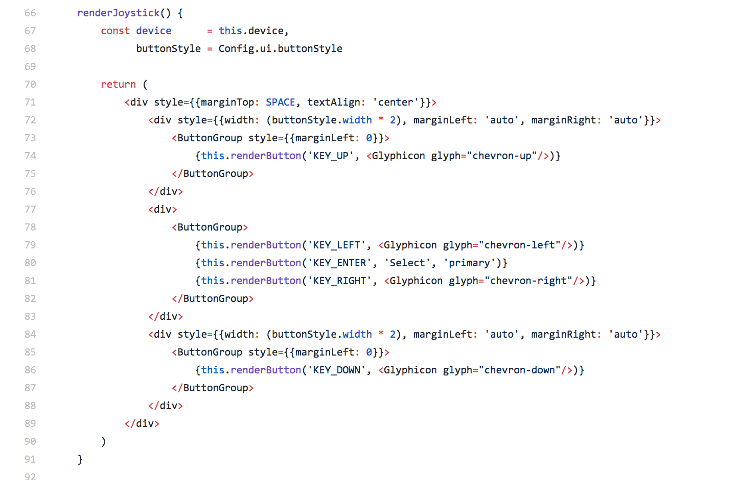 The onscreen joystick logic, which sends up/down/left/right/select: