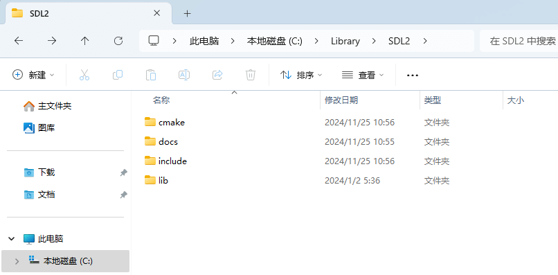 如果因为网络因素下载困难,也可以直接使用我下载好的SDL库:百度网盘,版本与教程相同