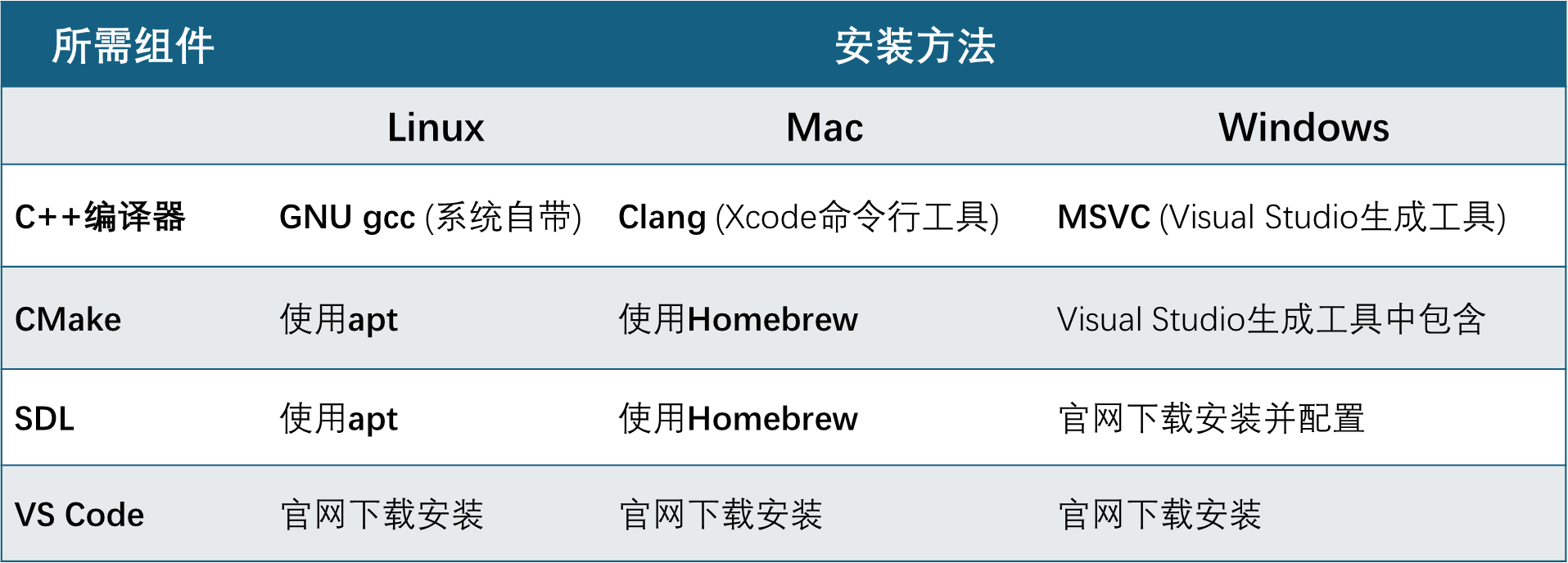 sudo apt install cmake libsdl2-dev libsdl2-image-dev libsdl2-mixer-dev libsdl2-ttf-dev至此即完成配置。