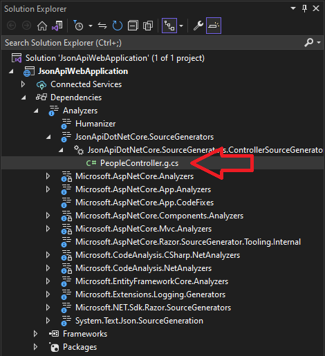 Something else you can try: add the following to your .csproj, rebuild and inspect the contents of .\obj\Debug\net6.0\generated\JsonApiDotNetCore.SourceGenerators\JsonApiDotNetCore.SourceGenerators.ControllerSourceGenerator\