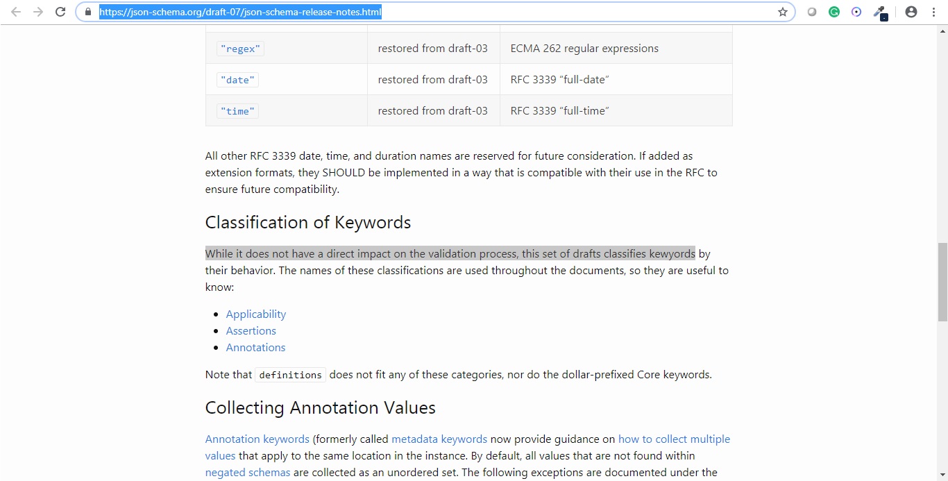 Referring site - https://json-schema.org/draft-07/json-schema-release-notes.html