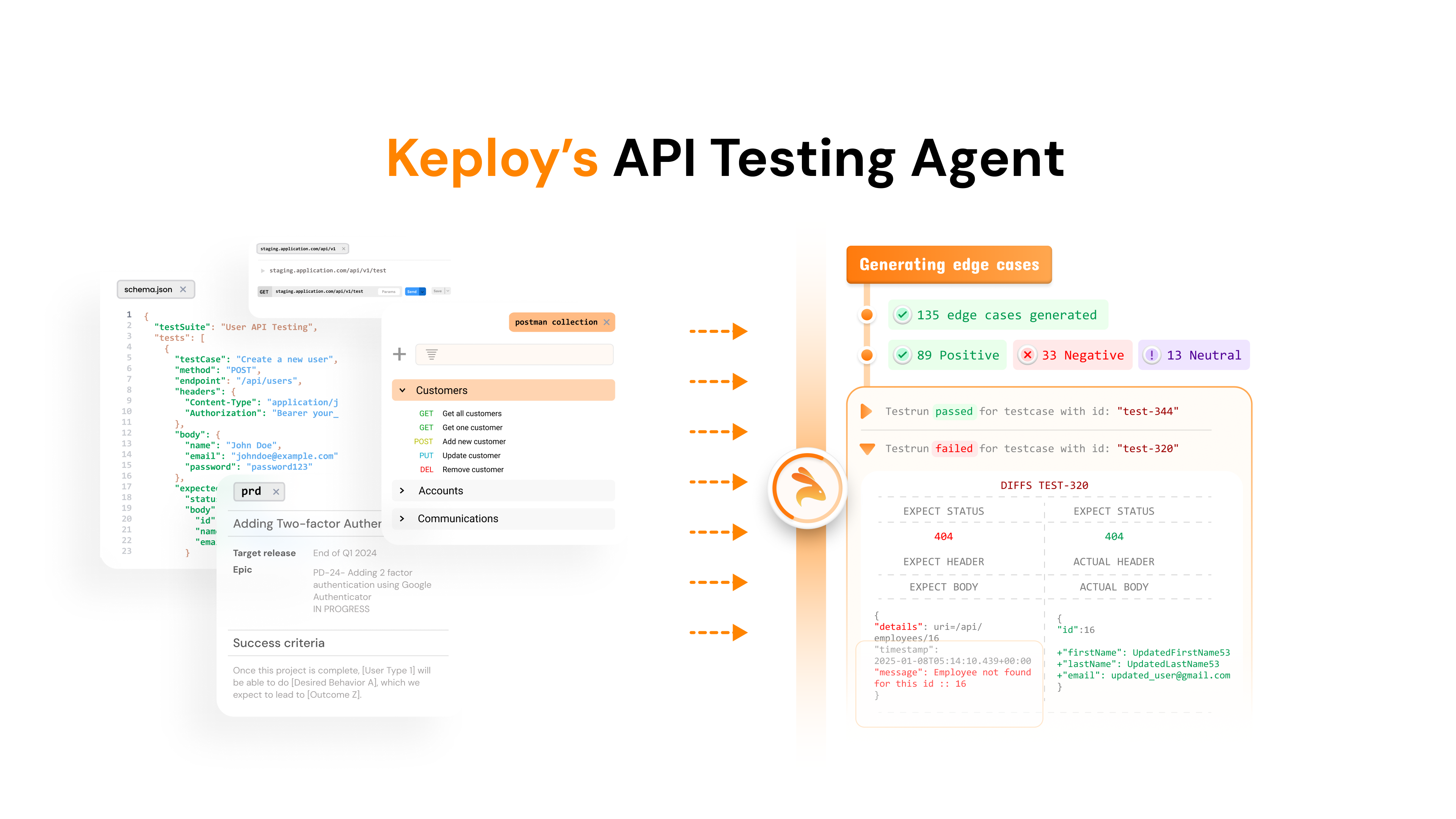 Keploy uses existing recordings, Swagger/OpenAPI Schema to find: boundary values, missing/extra fields, wrong types, out‑of‑order sequences, retries/timeouts.