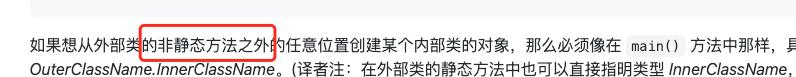 “外部类的非静态方法之外的任意位置” 和 “外部类的静态方法中 ” 这两句的描述是否有误?因为外部类的非静态方法中创建内部类对象也可以直接指明类型 InnerClassName
