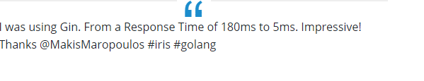 Iris is a fast, simple yet fully featured and very efficient web framework for Go. It provides a beautifully expressive and easy to use foundation for your next website or API.