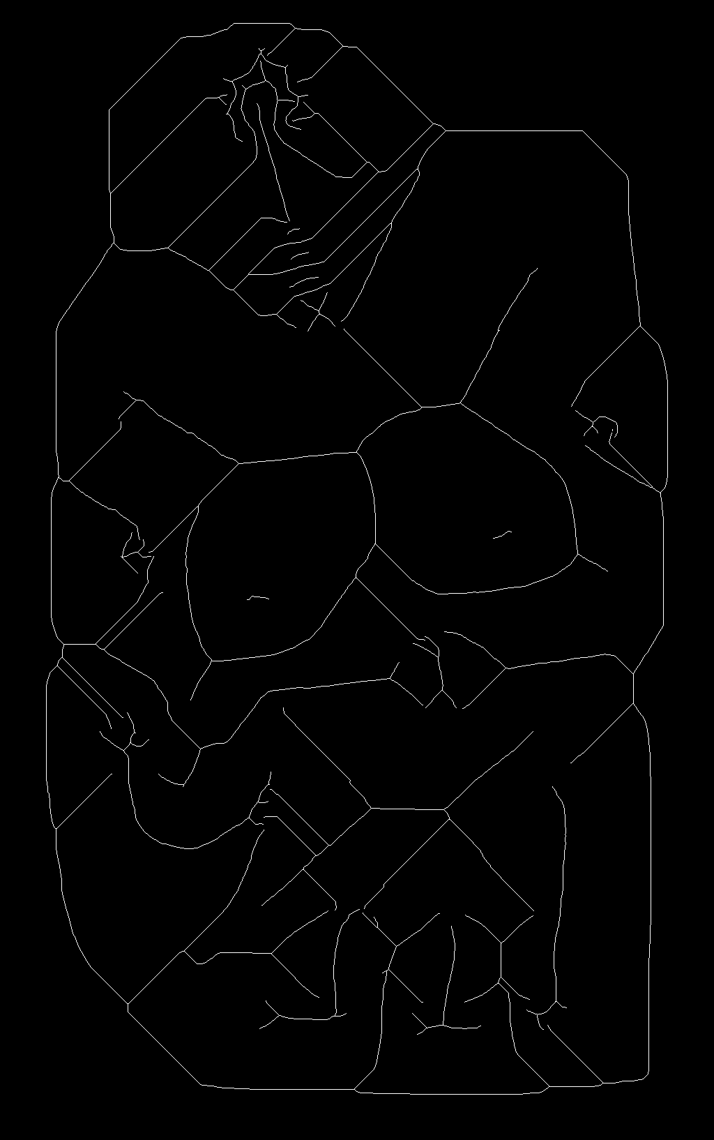We first detect the edge of all regions using OpenCV and get this edge map: