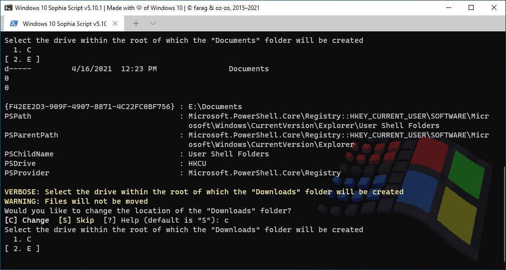 - Change location of the user folders programmatically (without moving user files) within interactive menu using arrows to select a drive