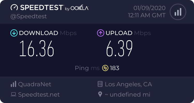 测试结果:下行16.36/8=2.1 刚刚好是admin端配置的2MB/S。