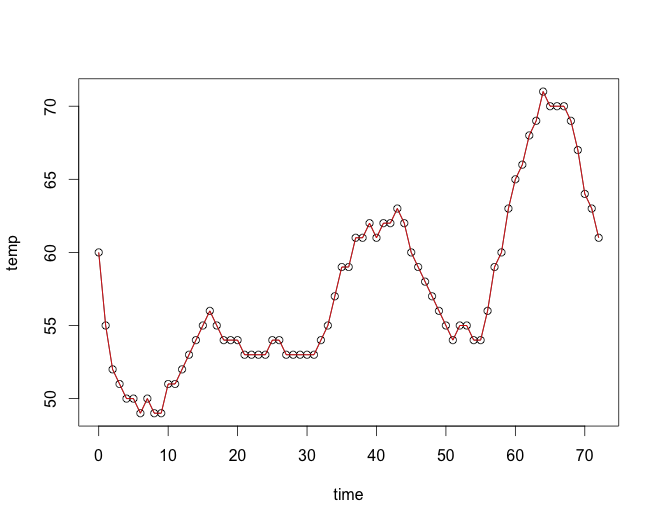In our example data we have the temperature every hour so the first few rows of our data (data.txt) looks