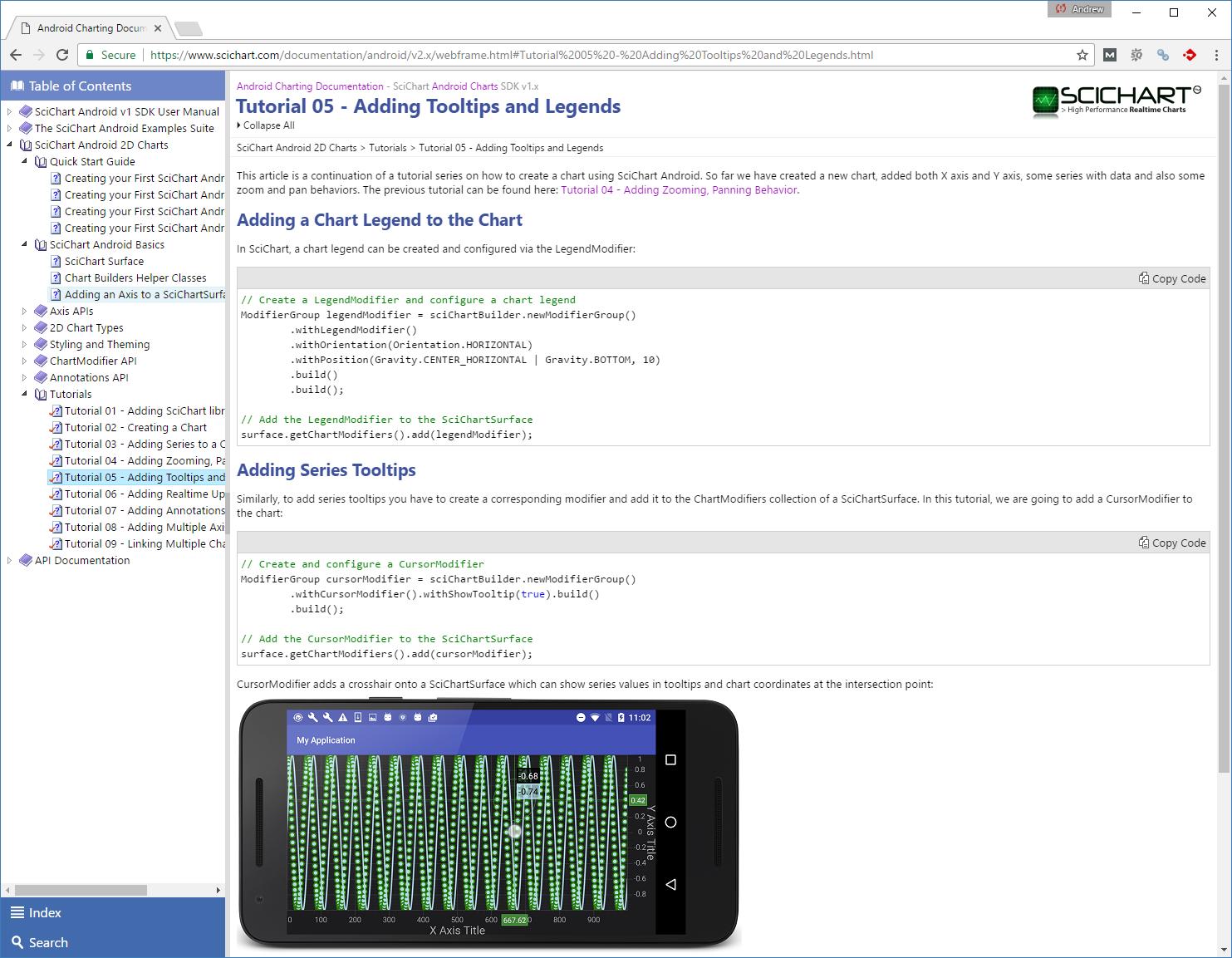 We now have a set of Tutorials targetting SciChart Android v2.x over on our website. Please find a list of tutorials below: