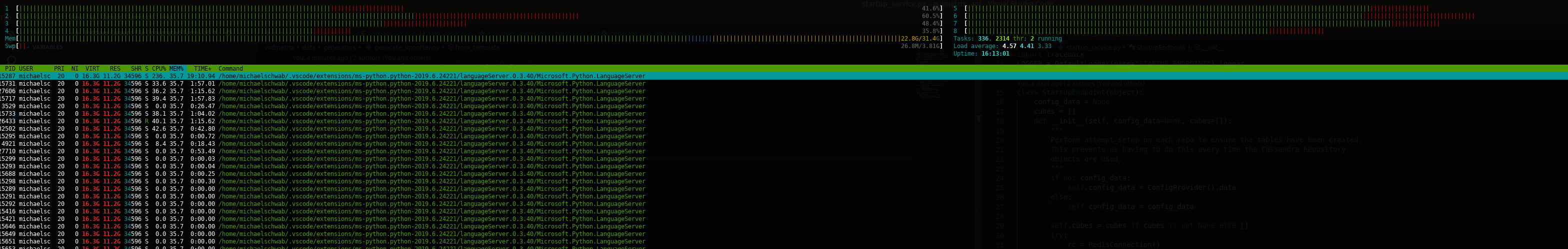 Cloning and opening sqlalchemy as a workspace yielded ~500MB RAM consumption. This is 0.5.10