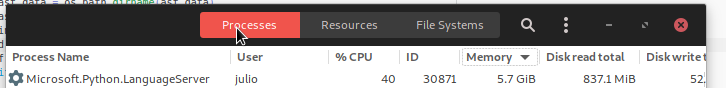 @CaselIT when you generated these gaphs, did you make something specific during these peaks of processor usage? Analyzing your graphs and the behavior of my LS, it looks like the memory leak only occurs when, by some reason, the LS restarts the analyzis of the project and the entire list of dependencies.