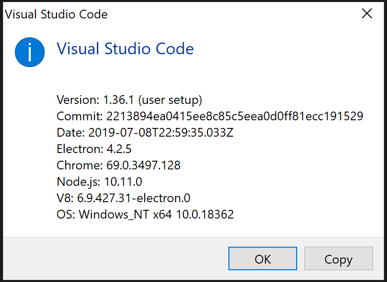 VS Code version: Code 1.36.0 (0f3794b38477eea13fb47fbe15a42798e6129338, 2019-07-03T13:25:46.372Z)