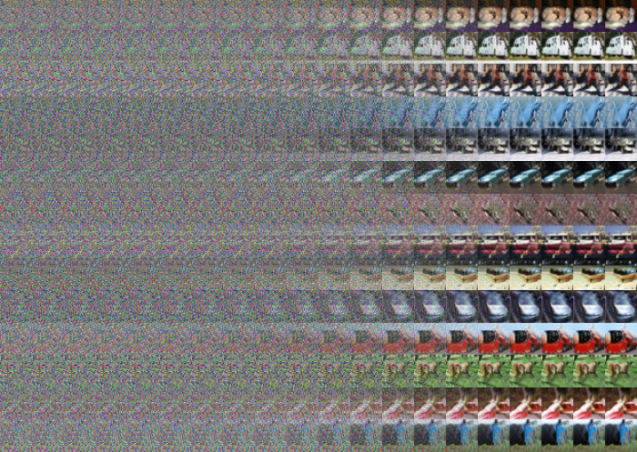 Sample output from minDiT (39.89M parameters) on CIFAR-10: