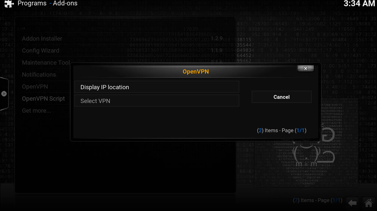 - Kodi user has sudo privileges to stop/start openvpn systemd service and change symlinks in '/etc/openvpn' folder.