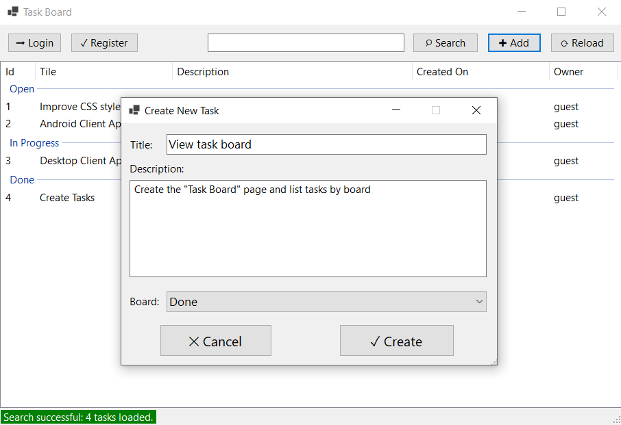 Windows Forms Client for the TaskBoard RESTful API.