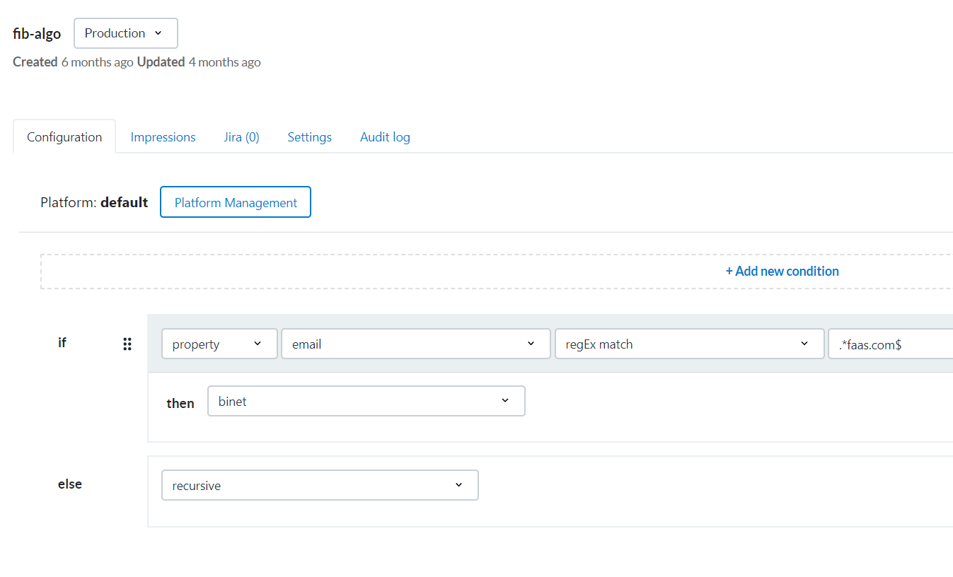 fib-algoflag and add a targeting rule that looks for theemailto end with@faas.comand servesbinet.