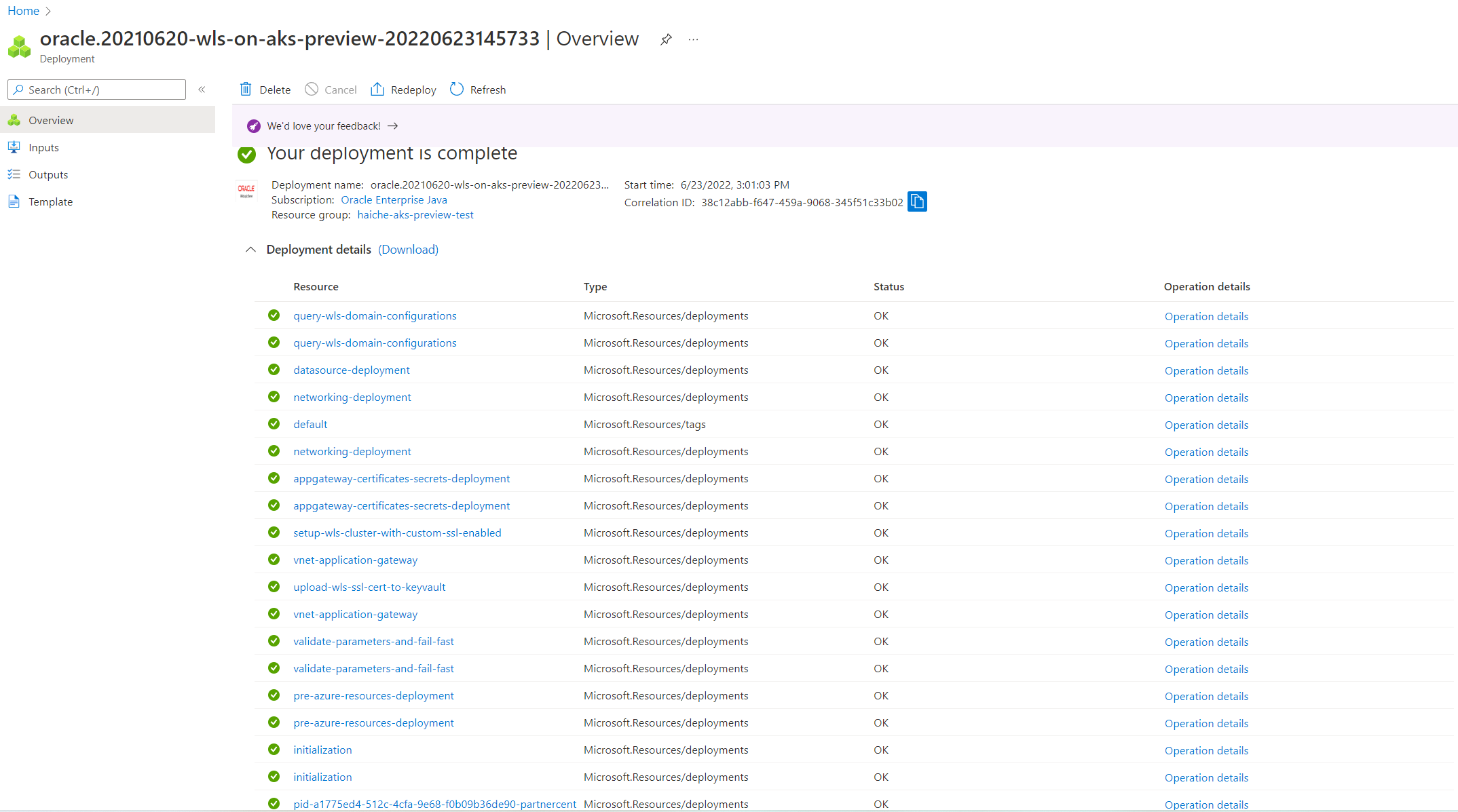 Oracle WebLogic Server on Azure Kubernetes Service is submitted to Go Live.