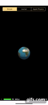 }As finger moves over the sphere we use pan gesture recognizer to calculate end and start vector like in the previous example, then calculate torque and angularAcceleration. Then save angularAcceleration in sphere's SimplePhysicsBody.