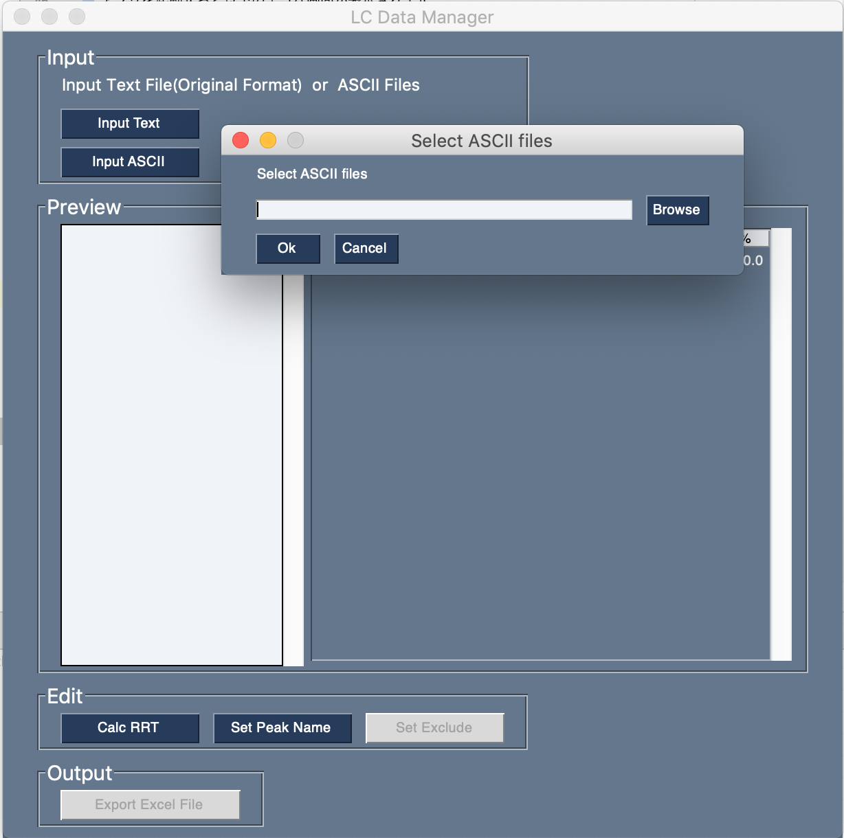 "Input ASCII"ボタンを押して表示されるポップアップから"Browse"ボタンでASCIIファイルを複数選択し"OK"を押します。