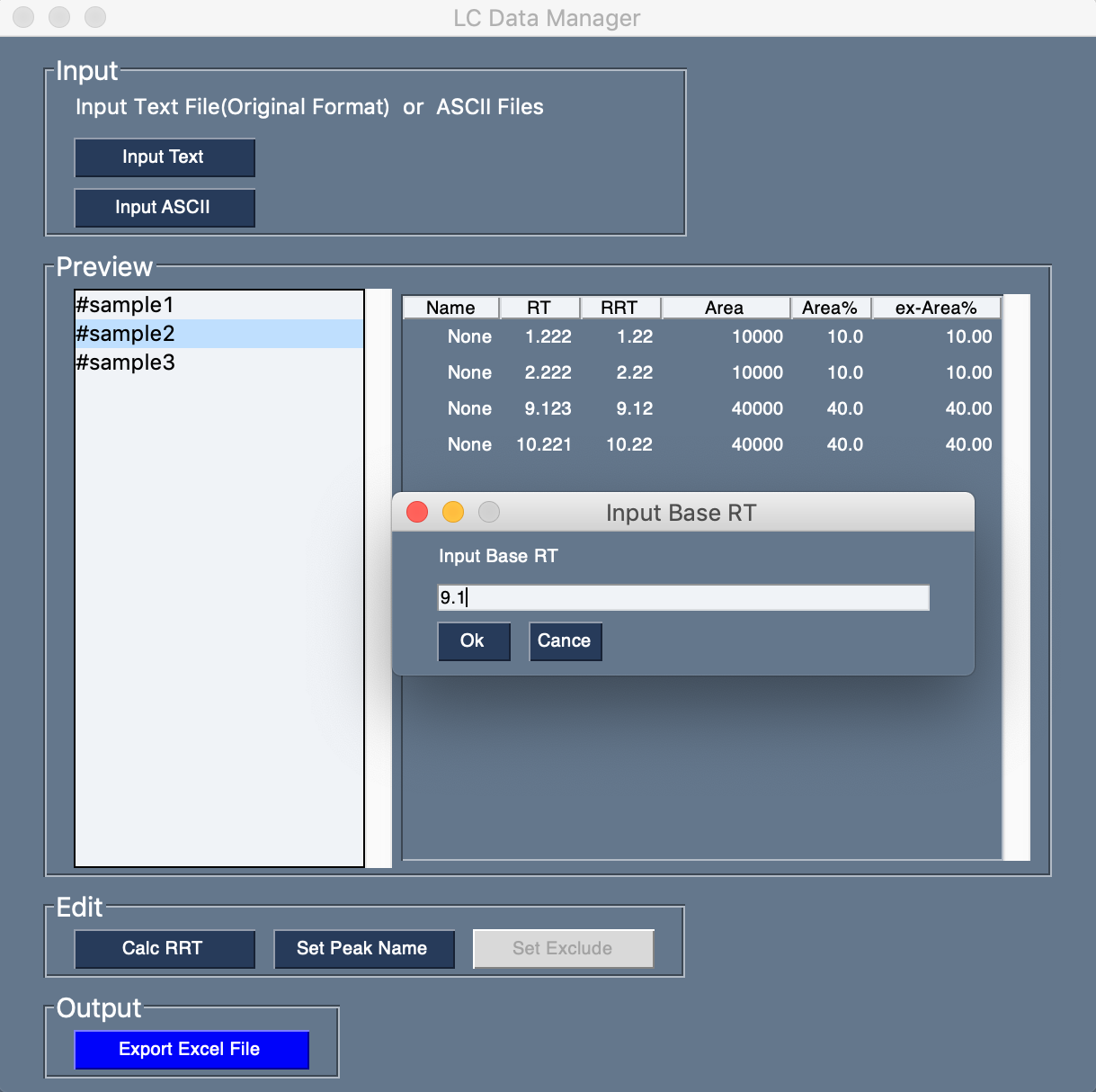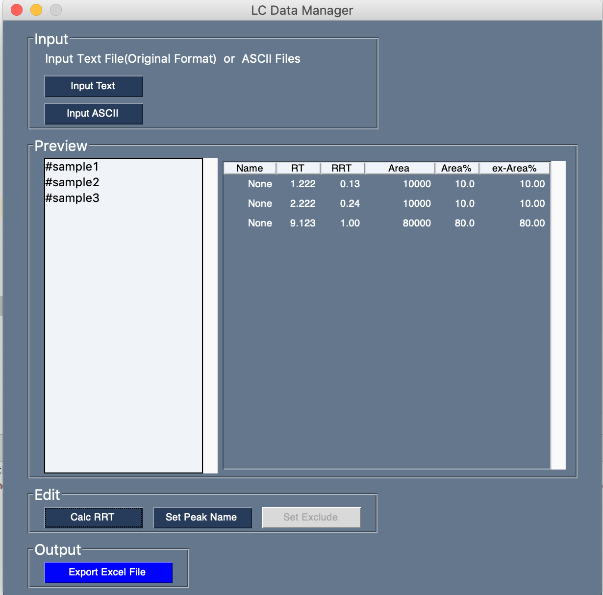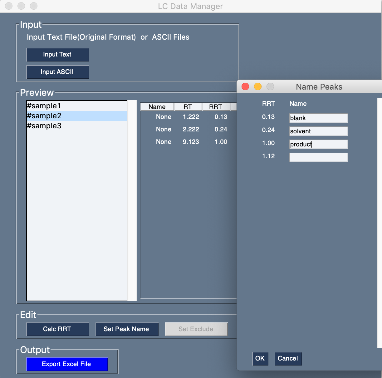 - HPLCデータを編集します. (e.g. RRT(相対保持時間)の計算, 不要なピークを計算から除外する)