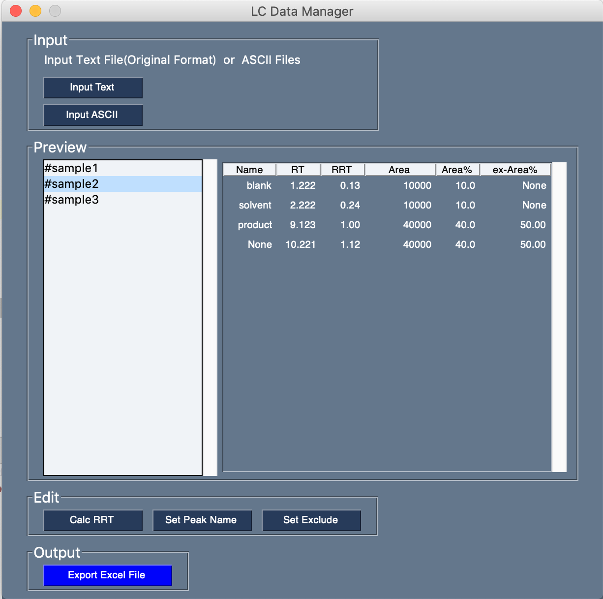 HPLCのデータを編集・管理するためのGUIアプリケーションです。