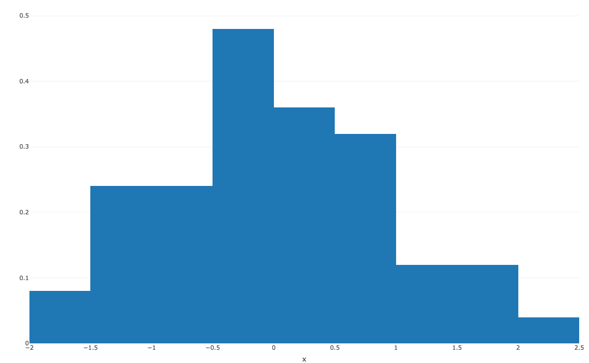 area under normalized histogram is not 1 in plotly R