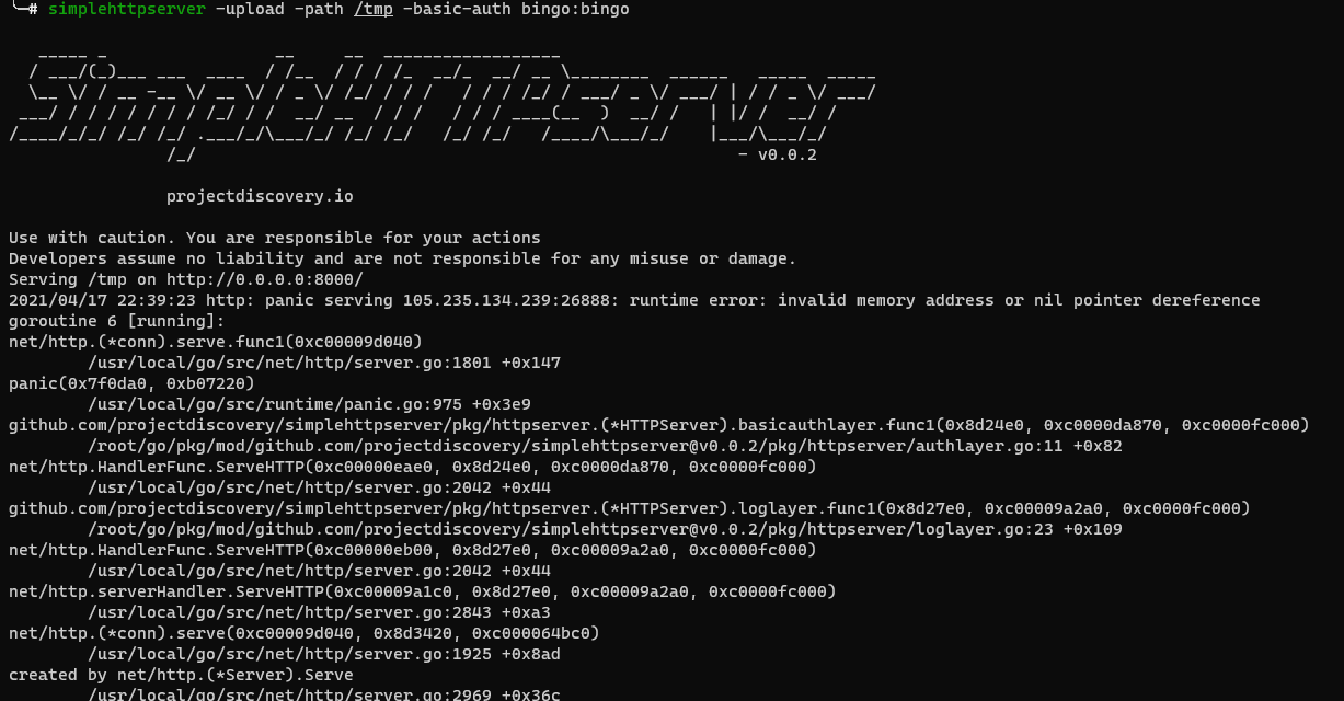 github.com/projectdiscovery/simplehttpserver/pkg/httpserver.(*HTTPServer).basicauthlayer.func1(0x8d72e0, 0xc0001201b0, 0xc000134000)
