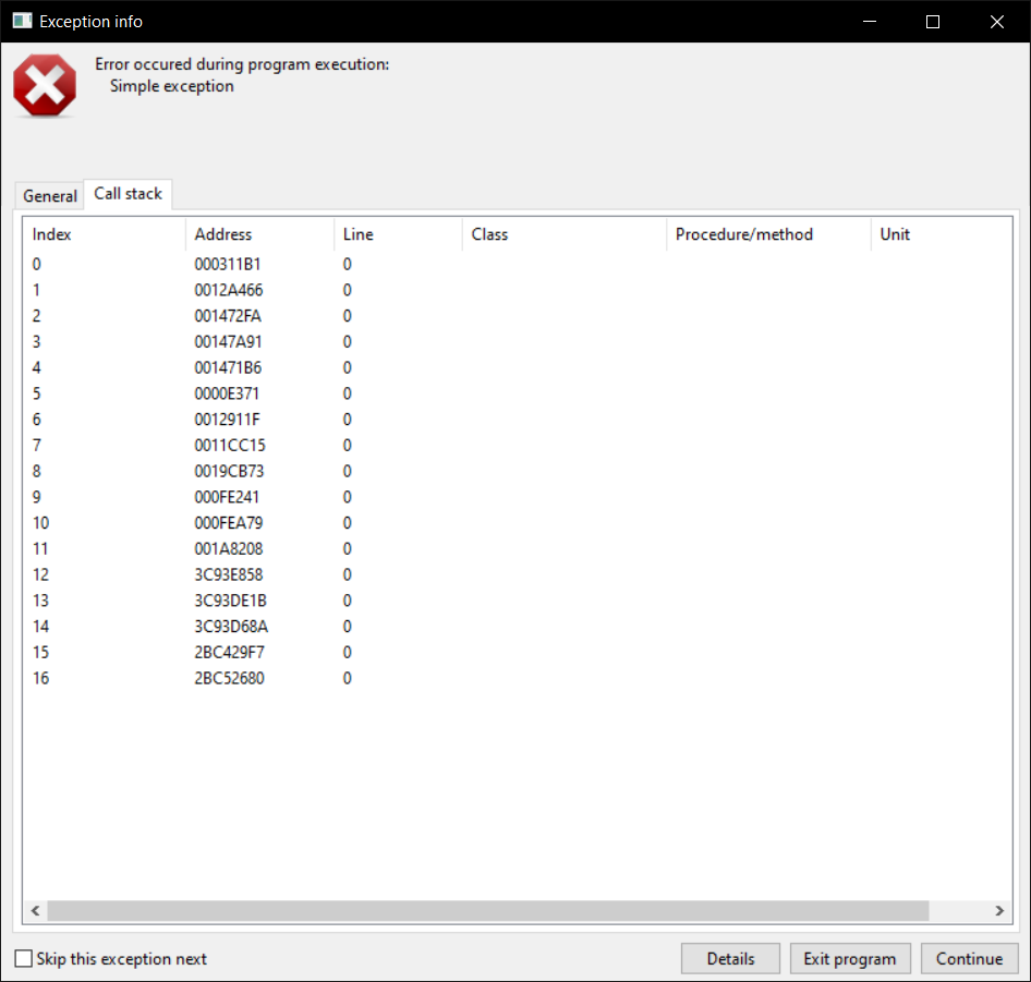 No Call Stack output (64 bit windows)