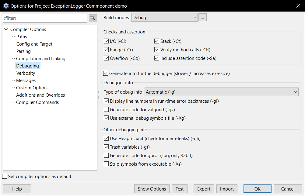 These are my debugging settings: