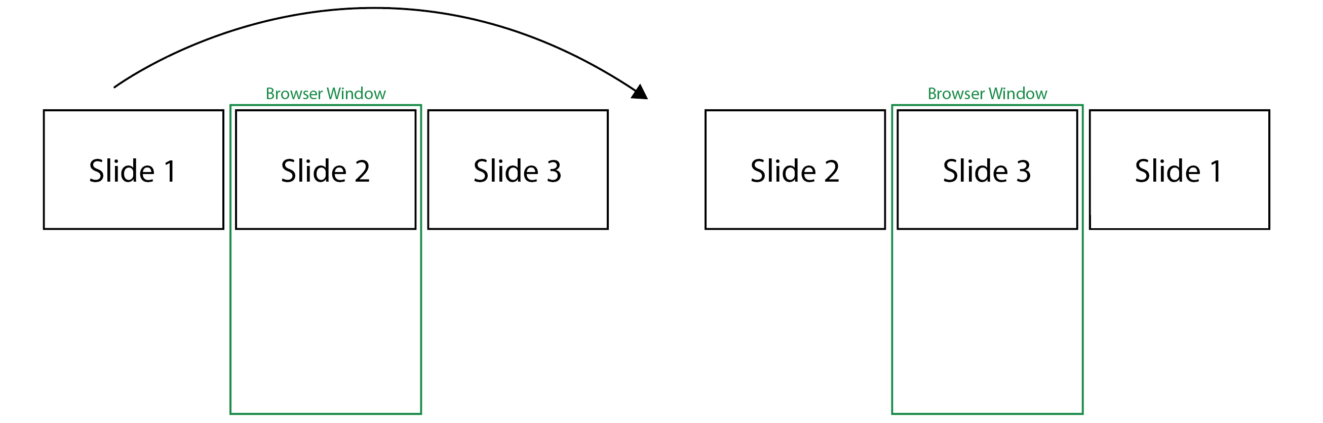 Right now everytime the interval runs the first slide is moving further and further to the left. What we need to do next is add some code to our callback function that will move the first slide to the end of the queue. We want the second image to now be the first slide. Recall this image from earlier: