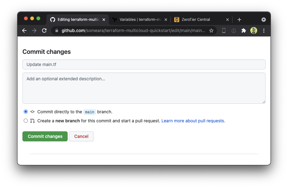 This quickstart tutorial creates a lab environment for using ZeroTier in combination with multiple Terraform cloud providers. If you're a ZeroTier user that's new to Terraform, You might be looking for the Terraform Quickstart instead.