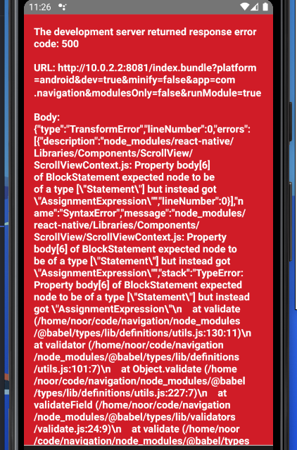 node_modules/react-native/Libraries/Components/ScrollView/ScrollView.js: Property body[42] of BlockStatement expected node to be of a type ["Statement"] but instead got "AssignmentExpression"