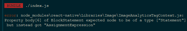 error: node_modules/react-native/Libraries/Image/ImageAnalyticsTagContext.js: Property body[6] of BlockStatement expected node to be of a type ["Statement"] but instead got "AssignmentExpression"
