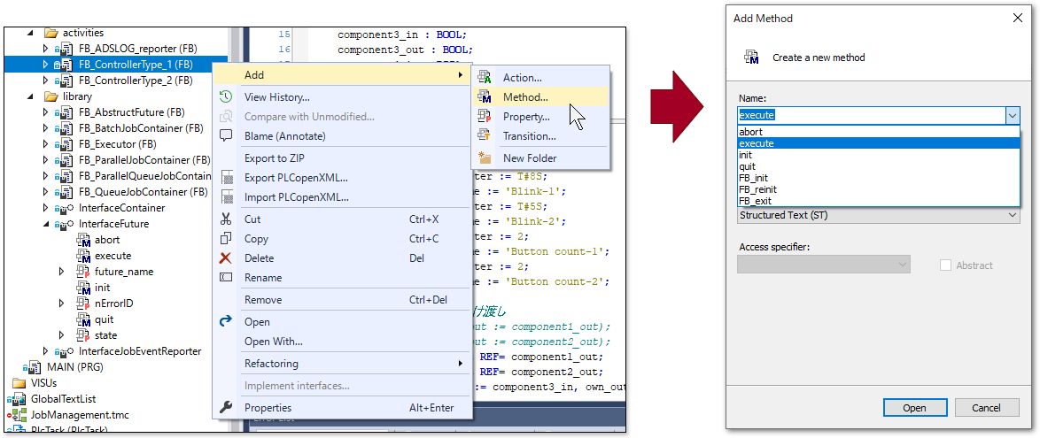 InterfaceFutureを実装すると全てのメソッドを定義する必要がありますが、あらかじめ最低限のロジックが実装されたFB_AbstructFuture抽象クラスを継承して定義する方が楽です。 -