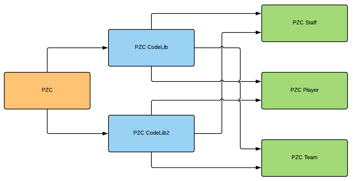 PizzaCoin contract is considered as a contract coordinator or a reverse proxy contract for PizzaCoinStaff, PizzaCoinPlayer and PizzaCoinTeam contracts. When a user needs to interact with any contract function, a user just makes a call to PizzaCoin contract right away. For example, a user wants to join some specific team, he/she can achieve this by invoking registerPlayer function on PizzaCoin contract. The contract would then interact with its children contracts in order to do register the calling user as a player to the specified team.