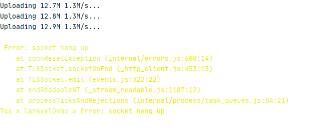 但是进行 npm i 后,再进行部署,提示 socket hang up