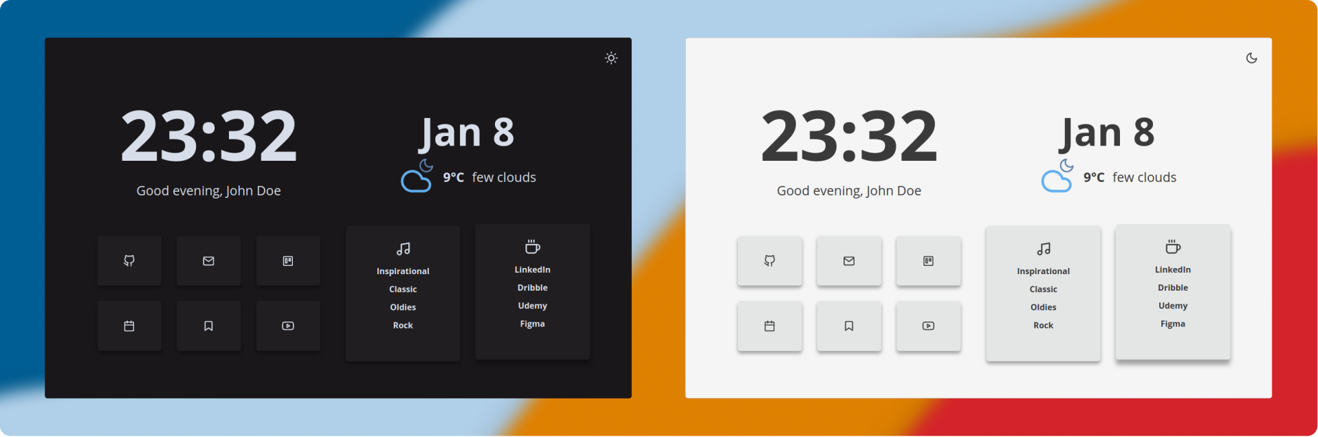 - Dark/Light mode, you can toggle them and It'll be saved in local storage.