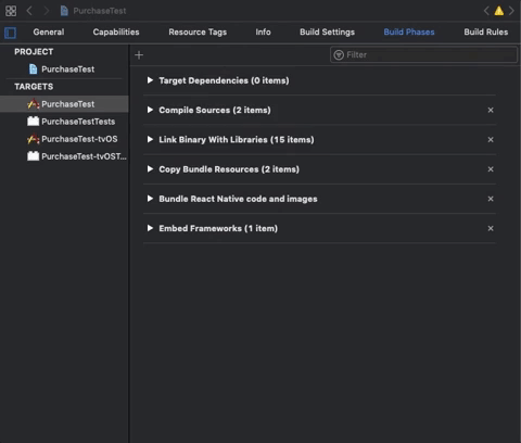Purchases.frameworkfrom theRNPurchasessub-project under the libraries section to the outer project and create a reference.